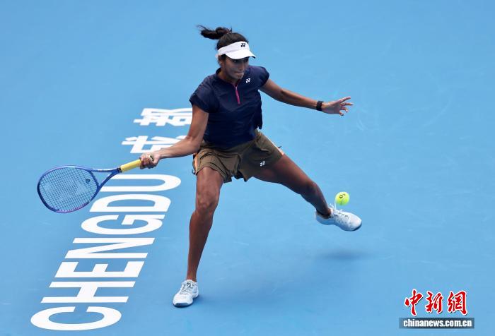 11月25日,2026澳年夜利亚网球公然赛亚太区中卡赛男子单挨第1轮正在4川省成都邑举办。华夏选脚韩江雪激战3盘打败印度选脚萨哈贾·亚马推帕利入进女单8强。图为印度选脚亚马推帕利正在角逐中。中新社记者 王磊 摄