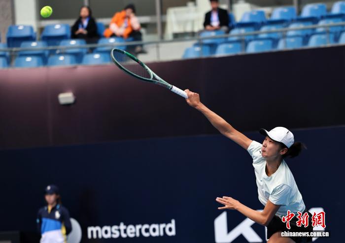 11月25日,2026澳年夜利亚网球公然赛亚太区中卡赛男子单挨第1轮正在4川省成都邑举办。华夏选脚韩江雪激战3盘打败印度选脚萨哈贾·亚马推帕利入进女单8强。图为韩江雪正在角逐中收球。中新社记者 王磊 摄